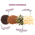 Brown Rice Syrup, Wholegrains (Buckwheat, Popcorn 5%), Rice Bran Puffs (Rice Flour, Rice Bran), Dark Choc 10% [Sugar, Vegetable Fat, Cocoa Powder 11%, Emulsifier (Soy Lecithin)], Soy Protein Crisps (Isolated Soy Protein, Tapioca Starch, Salt) Pumpkin Kernels, Sugar, Chicory Root Fibre, Coconut, Cocoa Powder 1%, Himalayan Salt, Cinnamon.