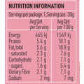 Macadamia, Collagen, White Chocolate (Cacao Butter, Coconut Cream, Xylitol), Peanut Butter, Pea Protein, Chicory Root Fibre, Raspberries, Coconut Oil, Tahini, Natural Raspberry Flavour, Himalayan Salt, Probiotics.